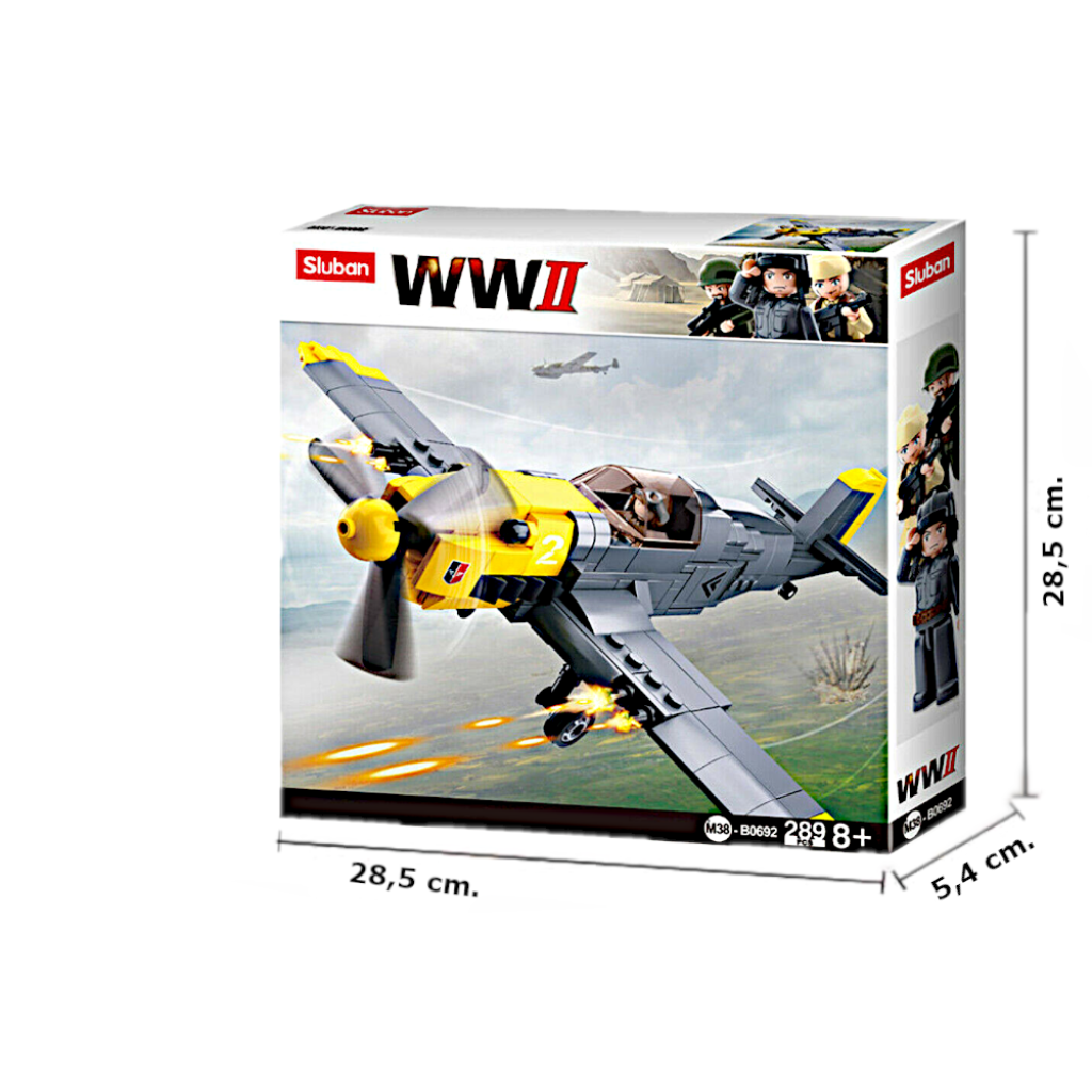 Klocki Sluban to nowa marka klocków i jest kompatybilna z innymi znanymi markami klocków COBI czy LEGO.KLOCKI WIERNIE ODWZOROWUJĄ Messerschmitt Bf 109 – niemiecki samolot myśliwski, podstawowy myśliwiec Luftwaffe podczas II wojny światowej.