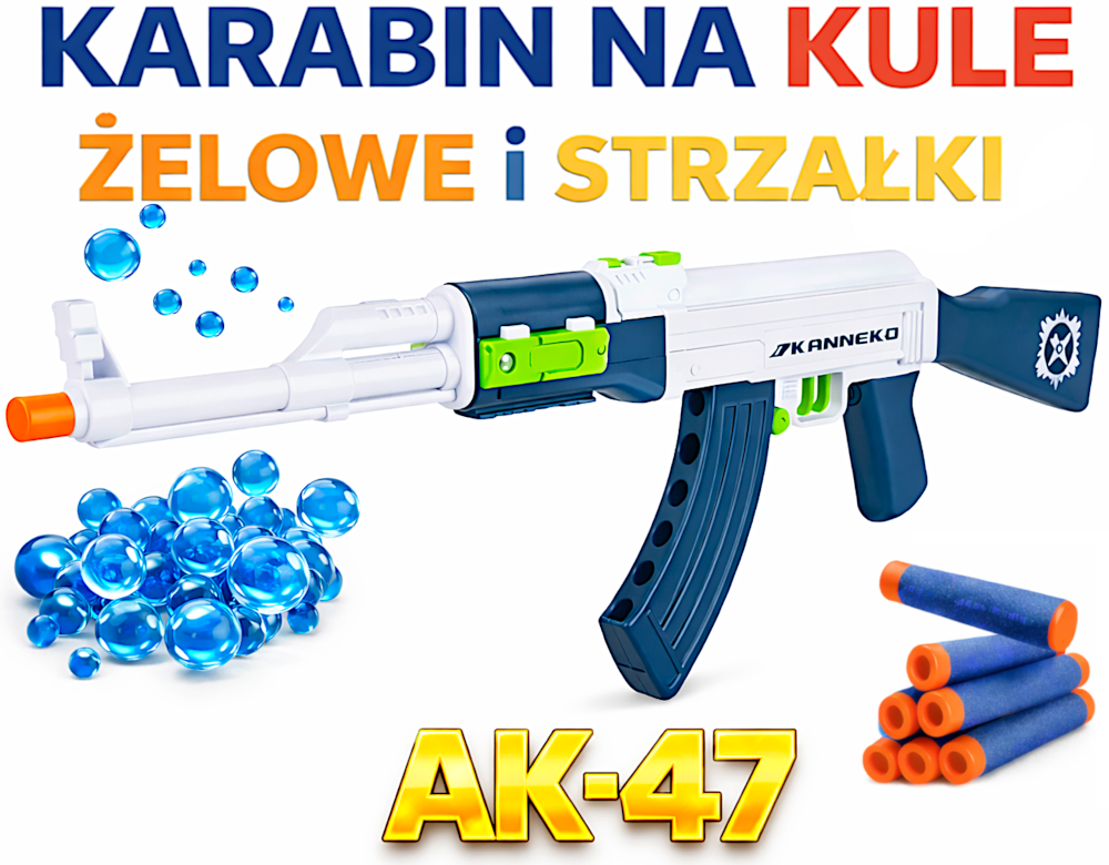 ❇️ AK-47 KARABIN NA KULKI ŻELOWE WODNE WYRZUTNIA BLASTER PISTOLET +10 szt STRZAŁKI PIANKOWE