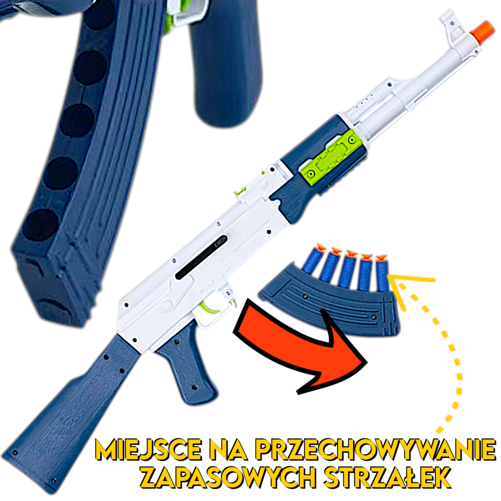 Zapomnij o nudnych zabawkach, które lądują w kącie po godzinie. Przedstawiamy karabin, który zamieni zwykłe popołudnie w ekscytującą misję specjalną! Ten imponujący model, stylizowany na kultowy AK-47, to coś znacznie więcej niż zwykły pistolet. To hybrydowa wyrzutnia 2w1, która daje Twojemu dziecku pełną swobodę wyboru strzelając zarówno przy użyciu piankowych strzałek jak i bezpiecznych kulek żelowych.